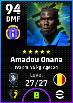 . Amadou Onana is a Defensive Midfielder footballer from Belgium who plays for Everton B in eFootball 2026.