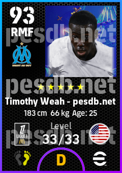 .Timothy Weah is a Right Midfielder footballer from United States who plays for Olympique De Marseille in eFootball 2026.