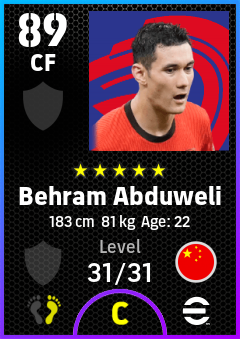 .Behram Abduweli is a Center Forward footballer from China Pr who plays for Free in eFootball 2026.