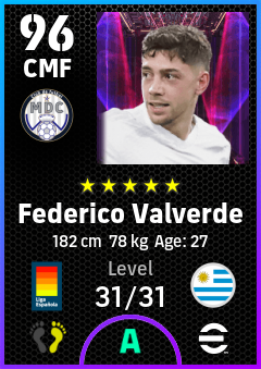 .Federico Valverde is a Center Midfielder footballer from Uruguay who plays for Madrid Chamartin B in eFootball 2026.