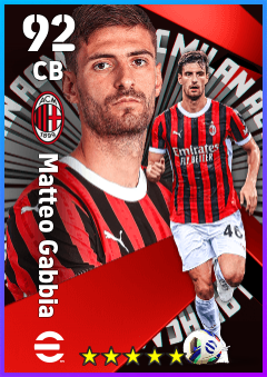 . Matteo Gabbia is a Center Back footballer from Italy who plays for Ac Milan in eFootball 2026.