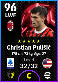 .Christian Pulišić is a Left Wing Forward footballer from United States who plays for Ac Milan in eFootball 2026.