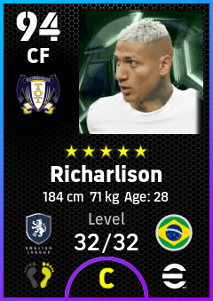 .Richarlison is a Center Forward footballer from Brazil who plays for Tottenham Wb in eFootball 2026.