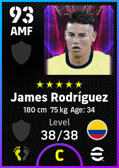 . James Rodríguez is a Attacking Midfielder footballer from Colombia who plays for Free in eFootball 2026.