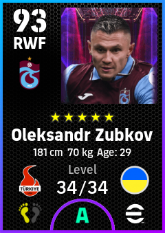 .Oleksandr Zubkov is a Right Wing Forward footballer from Ukraine who plays for Trabzonspor in eFootball 2026.