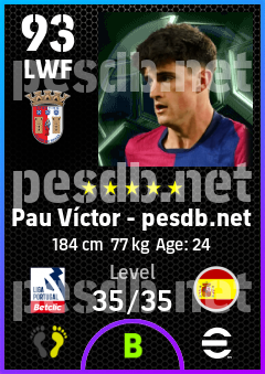 .Pau Víctor is a Left Wing Forward footballer from Spain who plays for Sporting Braga in eFootball 2026.