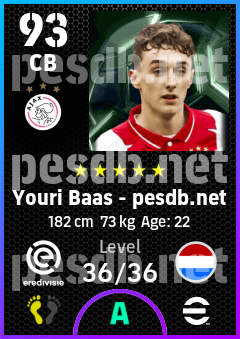 .Youri Baas is a Center Back footballer from Netherlands who plays for Ajax in eFootball 2026.