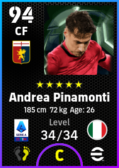 . Andrea Pinamonti is a Center Forward footballer from Italy who plays for Genova Rb in eFootball 2026.