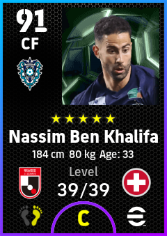 .Nassim Ben Khalifa is a Center Forward footballer from Switzerland who plays for Avispa Fukuoka in eFootball 2026.