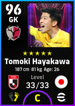 .Tomoki Hayakawa is a Goalkeeper footballer from Japan who plays for Kashima Antlers in eFootball 2026.