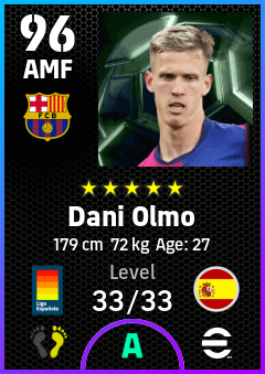 . Dani Olmo is a Attacking Midfielder footballer from Spain who plays for Fc Barcelona in eFootball 2026.