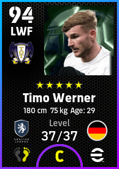 . Timo Werner is a Left Wing Forward footballer from Germany who plays for Tottenham Wb in eFootball 2026.