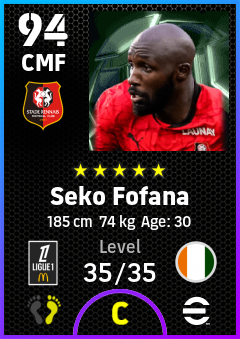 .Seko Fofana is a Center Midfielder footballer from Côte D'ivoire who plays for Stade Rennais Fc in eFootball 2026.