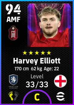 . Harvey Elliott is a Attacking Midfielder footballer from England who plays for Liverpool R in eFootball 2026.
