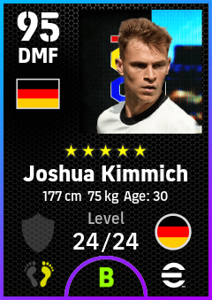 . Joshua Kimmich is a Defensive Midfielder footballer from Germany who plays for Germany in eFootball 2026.