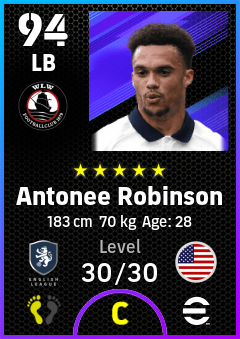 .Antonee Robinson is a Left Back footballer from United States who plays for Fulham W in eFootball 2026.
