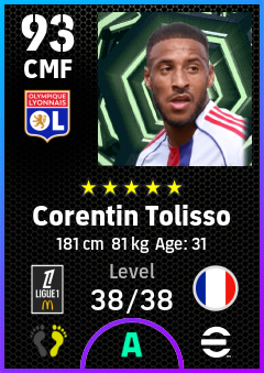 .Corentin Tolisso is a Center Midfielder footballer from France who plays for Olympique Lyonnais in eFootball 2026.