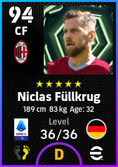 . Niclas Füllkrug is a Center Forward footballer from Germany who plays for Ac Milan in eFootball 2026.
