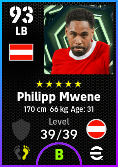 . Philipp Mwene is a Left Back footballer from Austria who plays for Austria in eFootball 2026.
