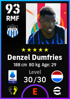 .Denzel Dumfries is a Right Midfielder footballer from Netherlands who plays for Internazionale Milano in eFootball 2026.