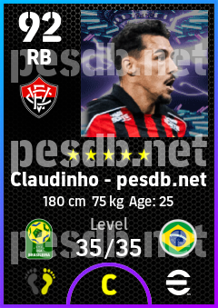 .Claudinho is a Right Back footballer from Brazil who plays for Ec Vitória in eFootball 2026.