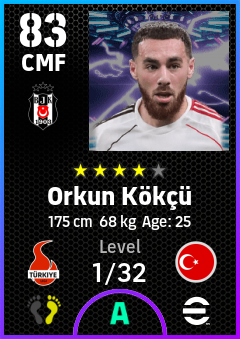 . Orkun Kökçü is a Center Midfielder footballer from Türkiye who plays for Beşiktaş Jk in eFootball 2026.