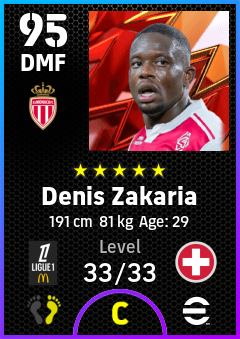.Denis Zakaria is a Defensive Midfielder footballer from Switzerland who plays for As Monaco in eFootball 2026.