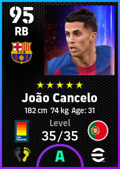 . João Cancelo is a Right Back footballer from Portugal who plays for Fc Barcelona in eFootball 2026.