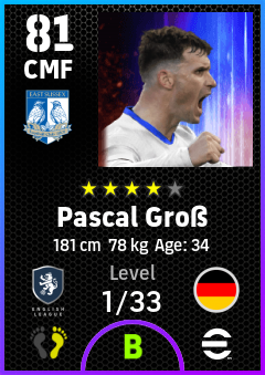 . Pascal Groß is a Center Midfielder footballer from Germany who plays for Brighton Wb in eFootball 2026.