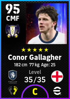 . Conor Gallagher is a Center Midfielder footballer from England who plays for Tottenham Wb in eFootball 2026.