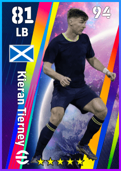 . Kieran Tierney is a Left Back footballer from Scotland who plays for Scotland in eFootball 2026.