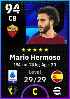 . Mario Hermoso is a Center Back footballer from Spain who plays for Roma Gr in eFootball 2026.