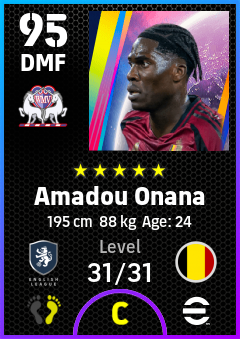 . Amadou Onana is a Defensive Midfielder footballer from Belgium who plays for Aston Rb in eFootball 2026.