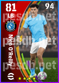 . Nico O'reilly is a Left Back footballer from England who plays for Manchester B in eFootball 2026.
