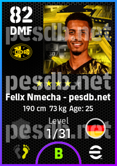 . Felix Nmecha is a Defensive Midfielder footballer from Germany who plays for Borussia Dortmund in eFootball 2026.