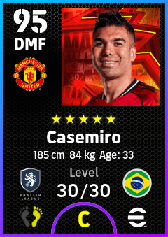 .Casemiro is a Defensive Midfielder footballer from Brazil who plays for Manchester United in eFootball 2026.