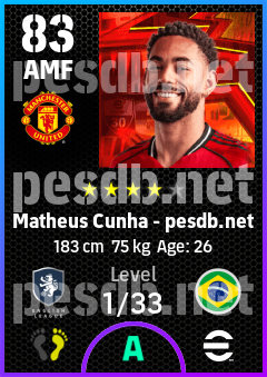 . Matheus Cunha is a Attacking Midfielder footballer from Brazil who plays for Manchester United in eFootball 2026.