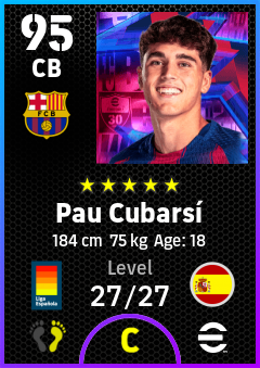 . Pau Cubarsí is a Center Back footballer from Spain who plays for Fc Barcelona in eFootball 2026.