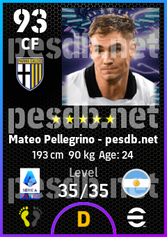 .Mateo Pellegrino is a Center Forward footballer from Argentina who plays for Parma Calcio 1913 in eFootball 2026.