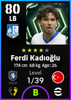 . Ferdi Kadıoğlu is a Left Back footballer from Türkiye who plays for Brighton Wb in eFootball 2026.