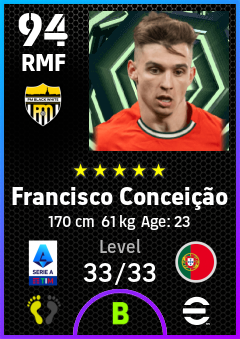 . Francisco Conceição is a Right Midfielder footballer from Portugal who plays for Piemonte Bn in eFootball 2026.
