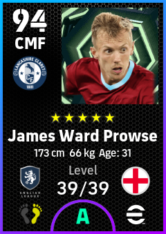 . James Ward Prowse is a Center Midfielder footballer from England who plays for Burnley Rb in eFootball 2026.