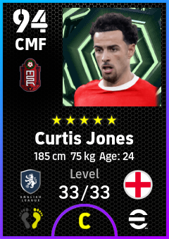 . Curtis Jones is a Center Midfielder footballer from England who plays for Liverpool R in eFootball 2026.