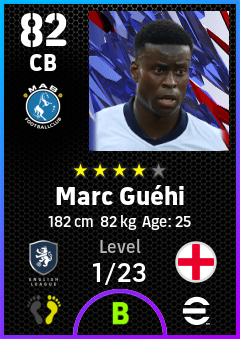 . Marc Guéhi is a Center Back footballer from England who plays for Manchester B in eFootball 2026.