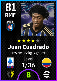 . Juan Cuadrado is a Right Midfielder footballer from Colombia who plays for Pisa Sporting Club in eFootball 2026.