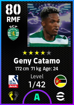 . Geny Catamo is a Right Midfielder footballer from Mozambique who plays for Sporting Cp in eFootball 2026.