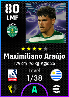 . Maximiliano Araújo is a Left Midfielder footballer from Uruguay who plays for Sporting Cp in eFootball 2026.