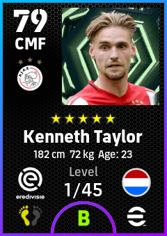 . Kenneth Taylor is a Center Midfielder footballer from Netherlands who plays for Ajax in eFootball 2026.