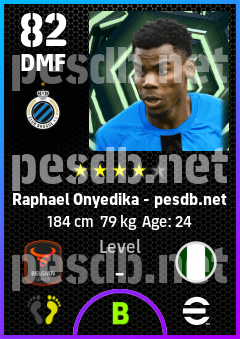 . Raphael Onyedika is a Defensive Midfielder footballer from Nigeria who plays for Brugge Bz in eFootball 2026.