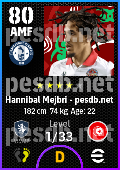 . Hannibal Mejbri is a Attacking Midfielder footballer from Tunisia who plays for Burnley Rb in eFootball 2026.